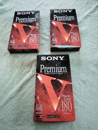 - Lot 3 Cassettes Video VHS SONY Premium E-180 - K7 Neuf-scelled/blister/nicam 3hNeuf | Professionnel25,00 EURou Offre directe+ Frais de livraison (20,00 EUR)de Francelegrenierdetim 99,9% positives (5,3K)