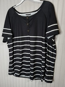 Chemise BloomChic femme 18-20 noir blanc rayé Henley grande taille manches courtes