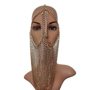 Gothic Tassels Chain Face Veil Rhinestones Metal Head Chain Accessory Mask